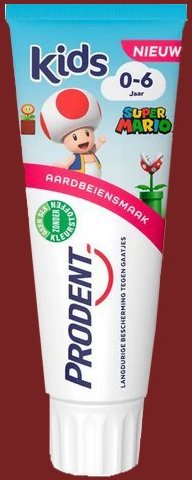 Onverrichter zake keren we terug naar de uitgang en dan ineens, vlak bij de deur, valt zijn oog op een tubetje kindertandpasta, s